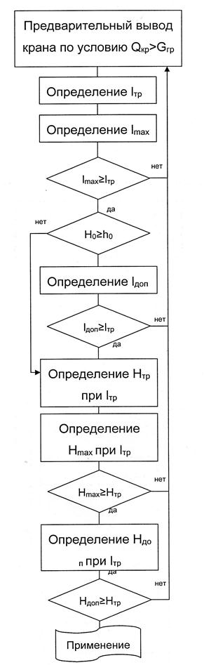 Выбор крана на ПК. Последовательность действий при выборе крана представлена на рис.8 в виде блок-схемы, каждый блок которой соответствует определенной операции выбора.