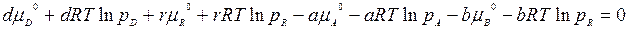 Пусть все участвующие в реакции вещества находятся в газообразном состоянии, каждое из которых характеризуется своим равновесным давлением рА, рВ, pD, рR. В условиях равновесия dG = 0, тогда для полного дифференциала энергии Гиббса имеем