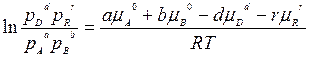 Пусть в реакции аА + bВ = dD + rR вещество D находится в кристаллическом состоянии, тогда аналогично предыдущему получим: