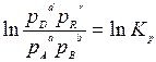 В правой части этого уравнения стоит величина, зависящая только от температуры и давления. Поскольку процесс идет в изобарно-изотермических условиях, эта величина будет постоянной. Обозначим ee lnКр,, тогда