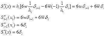 Составим такую форму записи сплайна, которая включает в себя выполнение условия непрерывности самого сплайна и его второй производной.