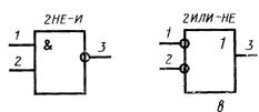 8. Логические элементы могут иметь логические эквивалентные формы. Например, элемент, имеющий таблицу истинности, выраженную в уровнях сигнала, которая приведена на черт. 22 а, имеет эквивалентные формы в положительной логике и в отрицательной логике, представленные на черт. 22 б и черт. 22 в соответственно.