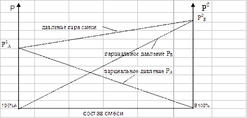 На рисунке показано, как зависят от состава жидкости А и В давления паров.