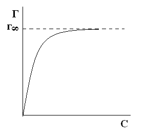 Обратите внимание: при малых концентрациях ПАВ адсорбция прямо пропорциональна С, а при высоких достигает предельного значения и дальше не меняется. Причем