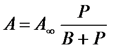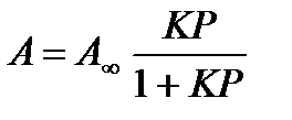- количество моль адсорбтива при полном заполнении всех активных центров, К- константа равновесия, Р- давление газа, а