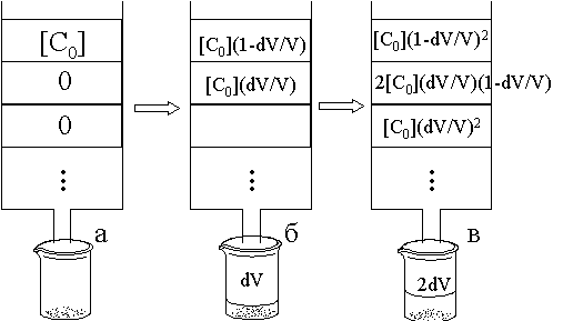 Рассмотрим самый простой колоночный вариант адсорбционной хроматографии. На адсорбент, заполняющий колону, наносят небольшой объём исследуемой жидкой смеси, которая проникает в поверхностный слой адсорбента. Затем колонку промывают соответствующим растворителем. При продвижении растворителя происходит разделение смеси на индивидуальные соединения, занимающие в колонке строго определённое положение. При дальнейшем пропускании растворителя индивидуальные соединения в виде раствора одно за другим выходят из колонки. Этот процесс называется элюирование, а жидкость, вытекающая из колонки – элюат. Элюат собирают отдельными порциями и определяют в них содержание анализируемых веществ.