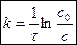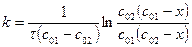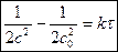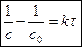 , где В – постоянная интегрирования. При t = 0 и с = 0 В = с0, тогда