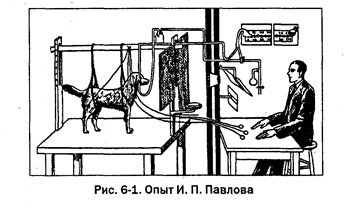 Павлов назвал звонок условным раздражителем, а пищу — безусловным раздражителем, вызывающим выделение слюны, или безусловным рефлексом. Выделение слюны в ответ на предъявление условного раздражителя стали называть условным рефлексом. Павлов полагал, что в процессе выработки условных рефлексов устанавливается связь между условным и безусловным раздражителями, в результате чего условный раздражитель заменяет безусловный. Повторное сочетание условного раздражителя с безусловным называется фазой выработки условного рефлекса. После того как условный рефлекс четко возникает на предъявление условного сигнала (звонок), можно приостановить подачу пищи, и тогда выделение слюны в ответ на предъявление условного раздражителя постепенно приостанавливается. Другими словами, происходит угасание условного рефлекса. Это угасание, по мнению Павлова, не приводит к разрушению связи между условным и безусловным раздражителем, так как при возобновлении подачи безусловного раздражителя после условного вскоре восстанавливается и условный рефлекс.