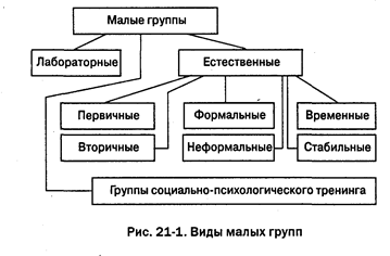 Малые группы являются основным объектом лабораторных экспериментов в социальной психологии. Поэтому необходимо различать группы искусственные (лабораторные), специально создаваемые для решения научных задач, и естественные, существующие независимо от воли исследователя (рис. 21-1).