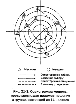- относительное число взаимных предпочтений (так называемая социометрическая сплоченность группы) (рис. 21-3).