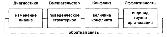 Существует два подхода к выбору и использованию стратегий вмешательства в управлении конфликтами: поведенческий и структурный. В стратегиях вмешательства, ориентированных на поведение, делается акцент на повышение групповой и организационной эффективности через изменение организационной культуры (установок, норм, ценностей, убеждений и т. д.) и, как следствие, поведения. Процедуры вмешательства (Т-тренинг, ролевой анализ, трансактные процедуры, методы группового развития, межгрупповая лаборатория и т. д.) ориентированы на обучение членов организации различным стилям управления конфликтами и диагностике ситуаций, в которых можно использовать эти стили.
