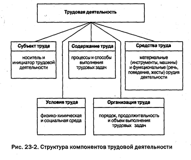 Решение многих прикладных задач по совершенствованию трудовой деятельности, а также изучение фундаментальных явлений психической активности человека связаны с необходимостью рассмотрения особенностей взаимосвязи различных компонентов структуры трудовой деятельности (рис. 23-2).