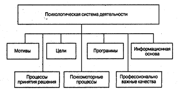 · Психологическая система деятельности — совокупность психических свойств, качеств субъекта труда, организованная для выполнения функций конкретной деятельности.