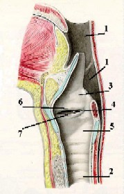 и нижний расширенный отдел - подголосовую полость (5), которая и переходит в просвет трахеи.
