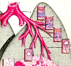 | | Трахея (Т)и главные бронхи(ГБ) | Крупные бронхи(КБ) | Средние бронхи(СБ) | Мелкие бронхи(МБ) | Терми- нальные бронхи- олы(ТБ) |
