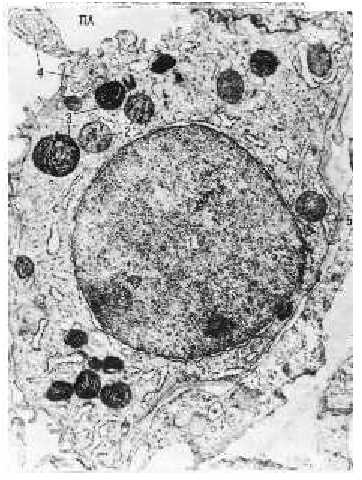 | Электронная микрофотография. Альвеолоцит 2-го типа в стенке альвеолы. | ||