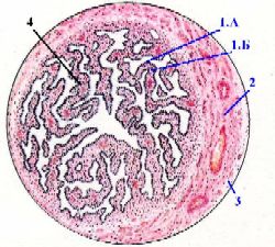 2. Как обычно, имеется собственная пластинка (1.Б) - рыхлая волокнистая соединительная ткань.