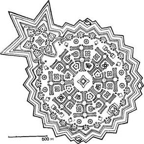 В ней графически изображена вся система городов разной величины, завершенная городами в форме звезд, имеющих по шестнадцать и даже по двадцать три луча6.