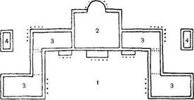 21. Шарль Фурье. Фаланстера; 1829 г. Симметричная дворцовая планировка дополнена комплексом зданий хозяйственного назначения, расположенных перед главным входом