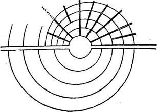 31. Теодор Фрич. Спиралевидный рвет города; '896 г. Автор предлагает спиралевидное развитие городского плана от начального ядра путем постепенного обволакивания существующего города отдельными функциональными зонами