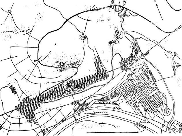 о. Иозеф Гочар. Иде- „•-.ьп город на 10 тыс.:ителей; 1937 г. Тради-..онная градостроитель- -.; композиция транс-оршрована здесь в со-твгтствии с потребно--?.:,'Л1 функционального ^.-положения промыш-i-.ного города