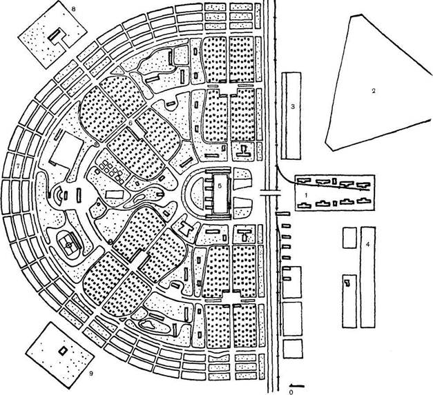 городов, усилила значение санитарных требований и подчеркнула роль зелени в жилой среде. Живой интерес, вызванный идеей города-сада, был вполне закономерен. Ее актуальность признается и сегодня, при решении сугубо современных проблем. Жизненность идеи города-сада оправдана, очевидно, тем, что она не связана ни с какой конкретной планировкой. Первоначальные наброски Хоуарда носили символический характер, а проекты его последователей, как правило, обусловливались требованиями своего времени.