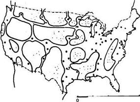 74. А. Доксиадис. США в 2060 г. с населением 925 млн. человек. Эку-менополис — представление о непрерывной системе городов и расселения, в которые вклинены отдельные зеленые площади