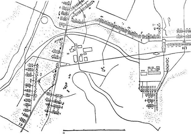 SI. М.Я. Гинзбург и коллектив. Черниковский промышленный узел; '.932 г. Проект жилых '.'рясое, отделенных от •.' ро мышленной зоны зеленью; предвосхищает концепцию расселения Г ильберсеймера