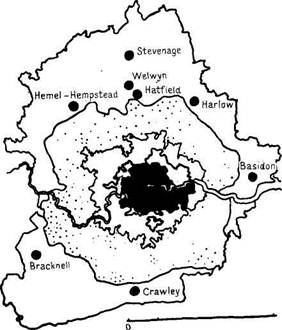 2....децентрализовать население и промышленность из переуплотненного центра в соответствии с выводами генерального плана лондонского графства...