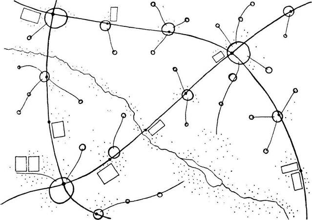 Однако по всей вероятности, основу транспортной сети будущих жилых систем составят мощные скоростные дороги — судя по современному состоянию техники—рельсовые, — дающие возможность за короткое время преодолеть большие расстояния и одновременно располагающие условиями для использования современной техники и автоматизации. Внедрение скоростных дорог находилось бы в соответствии с современной тенденцией увеличивать абсолютные величины отдельных звеньев системы расселения и лишь содействовало бы укреплению этой тенденции. Итак, будущее расселение можно себе представить в виде комплекса отдельных, достаточно больших функциональных звеньев — промышленных и сельскохозяйственных предприятий, научных центров, населенных мест, общественного обслуживания, курортных зон и транспортных систем — комплекса, пронизанного сетью мощных скоростных дорог. При этом отдельные компоненты будущей системы расселения сохранят свой специфический характер, а в различных областях вследствие влияния местных условий разовьются их отличительные взаимосвязи.