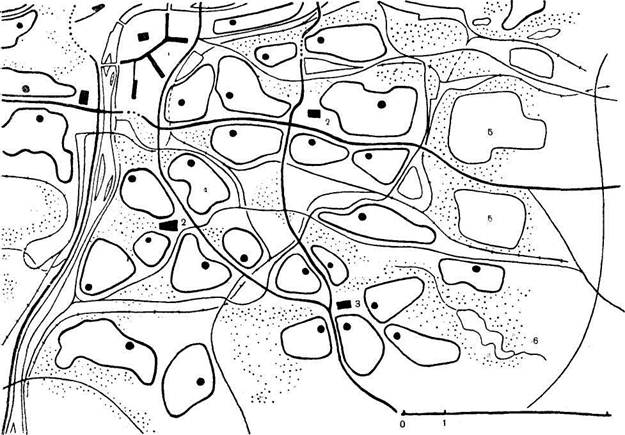 эта проблема отодвинула в сторону всо другие вопросы структуры жилой территории и города как единого целого. Благодаря проведенным исследованиям удалось достаточно глубоко проработать вопросы оптимальных размеров и наиболее рационального оборудования микрорайонов. Однако одностороннее внимание к этому звену жилой территории иногда приводит к его переоценке и схематичному использованию опыта без учета конкретных условий.