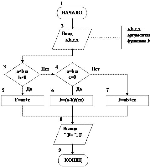 Рис. 1. Блок-схема алгоритма программы вычисления функции F