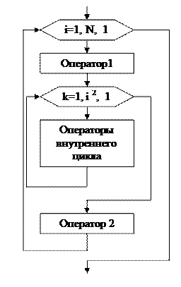 | for (int i=1; i<=N; i++) { Оператор 1 for (int k=1; k<=i*i; k++) { Операторы внутреннего цикла } Оператор 2 } |