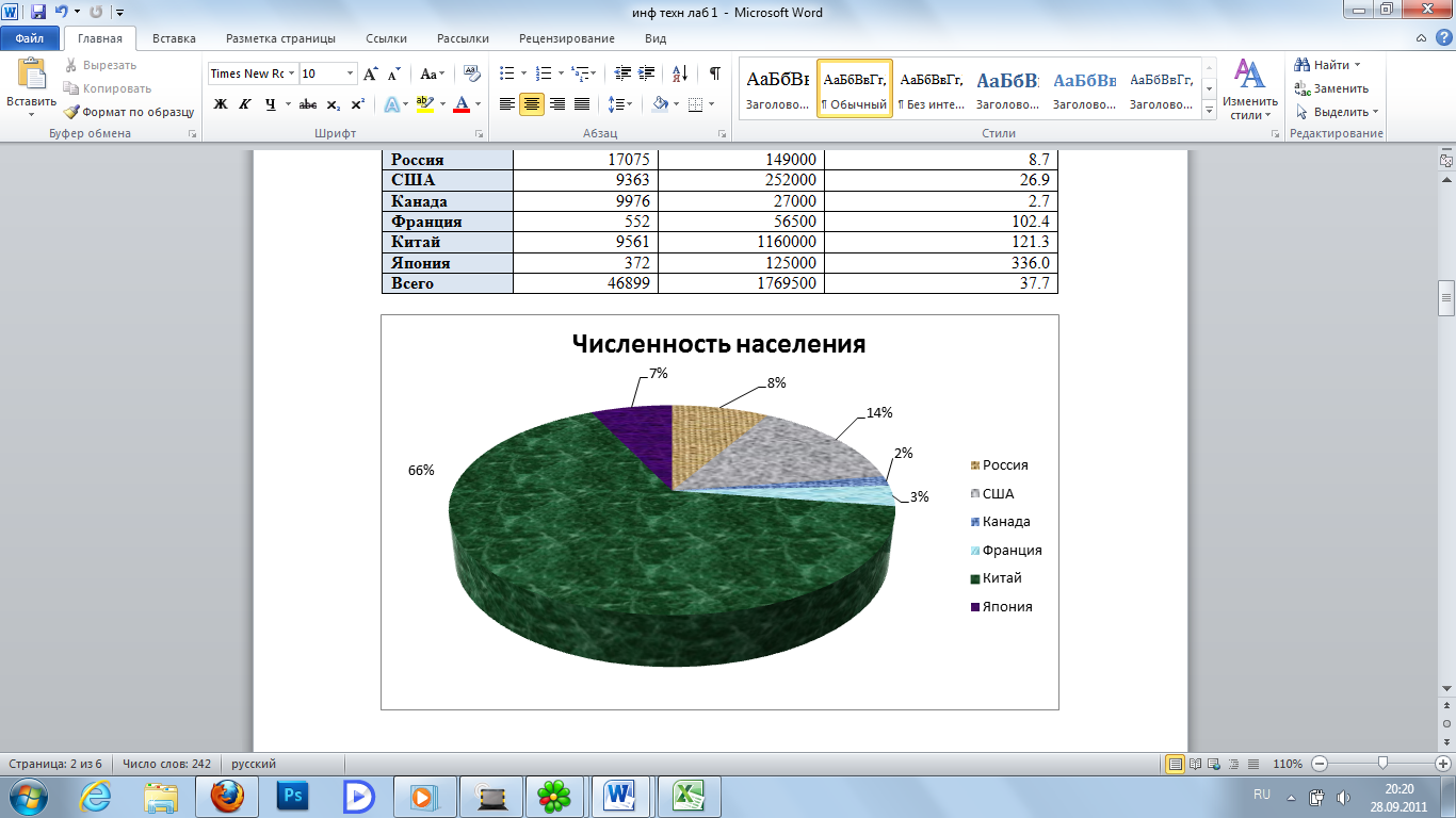 Чтобы создать диаграмму в Microsoft Word воспользуемся кнопкой Диаграмма на вкладке Вставка, тут же открывается окно Microsoft Exсel в котором есть ячейки для редактирования диаграммы.