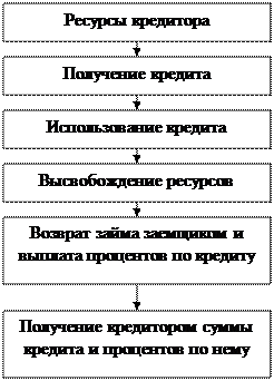 - заемщик возвращает ссужаемые ресурсы, завершившие кругооборот в его хозяйстве. Для обеспечения возврата заемщиктак должен построить воспроизведенный процесс, чтобы обеспечить высвобождение средств, достаточных для расчетов с кредиторами;