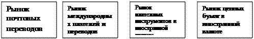 Валютный рынок обеспечивает механизм клиринга при проведении международных платежей, который действует через оборот депозитов в 'иностранной валюте, хранящейся в банках-корреспондентах, расположенных в других финансовых центрах.