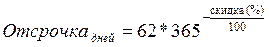 Организация использует при расчетах с покупателями способ плавающей рассрочки со скидкой. Отсрочка в поступлении денежных средств определяется по формуле: