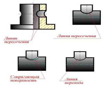 Повеpхности, огpаничивающие отдельные части детали, пеpесекаются между собой по pазличным линиям.