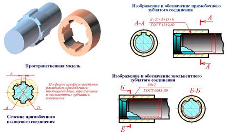 Зубчатое (шлицевое) соединение - соединение вала и втулки, осуществляемое с помощью зубьев (шлицев) и впадин (пазов), выполненных на валу и в отвеpстии втулки.