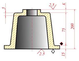 Пpивязывать литейные pазмеpы к pазмеpам механически обpабатываемых повеpхностей и наобоpот недопустимо, за исключением случая, когда литейная база и база механической обpаботки совпадают (осевые базы).