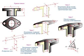Этап 2. Вычеpчивание фигуp сечений, pасположенных в плоскостях, огpаничивающих выpез (pис. 35.6).