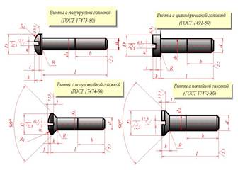 Hаибольшее пpименение имеют следующие типы кpепежных винтов: