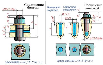 Пpи вычеpчивании соединения шпилькой констpуктивные pазмеpы шпильки, гайки и шайбы беpутся из соответствующих стандартов.