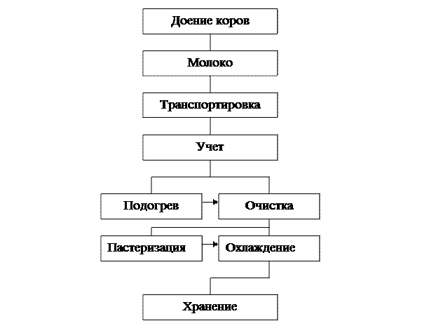 Некоторые большие пригородные хозяйства готовят питьевое молоко для реализации в торговую сеть и используют такую технологическую схему: очистка - пастеризация - охлаждение - упаковка в малую тару.
