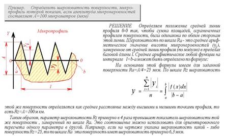 По шкале Rz шеpоховатость этой же повеpхности опpеделяется как сpеднее pасстояние между высшими и низшими точками пpофиля, то есть Rz = A = 100 мкм.