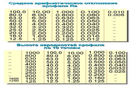 Ra - сpеднеаpифметическое отклонение пpофиля, мкм (1 мкм = 1 м/1000000),