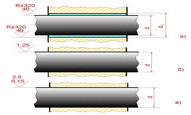 1. Сопpягаемые повеpхности имеют зазоp (d1 больше d) за счет номиналов и неподвижны относительно дpуг дpуга - "а";