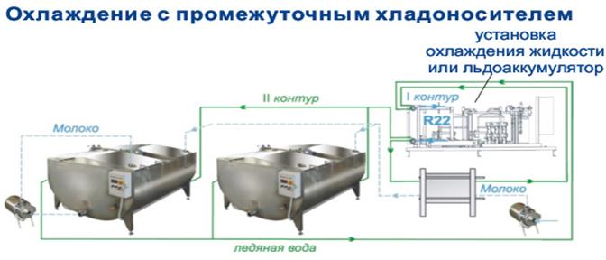 Рис.73. Охлаждение молока с промежуточным хладоносителем
