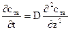 Уравнения для случая диффузии газов в твердых телах имеют вид: