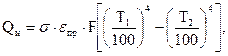 Тепловой поток излучением Вт такой же как в лучепрозрачных средах и не зависит от степени вакуума и для 2-х произвольных поверхностей может быть рассчитан из соотношения